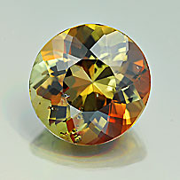 I have yet to find an image to accurately represent the different viewing angles, but depending on the axis, this stone can look dark red, yellowish orange, or olive green. A talented cutter will facet the stone in a manner that allows all three colors to dance around, as seen in the stone above. Kind of cool, huh?